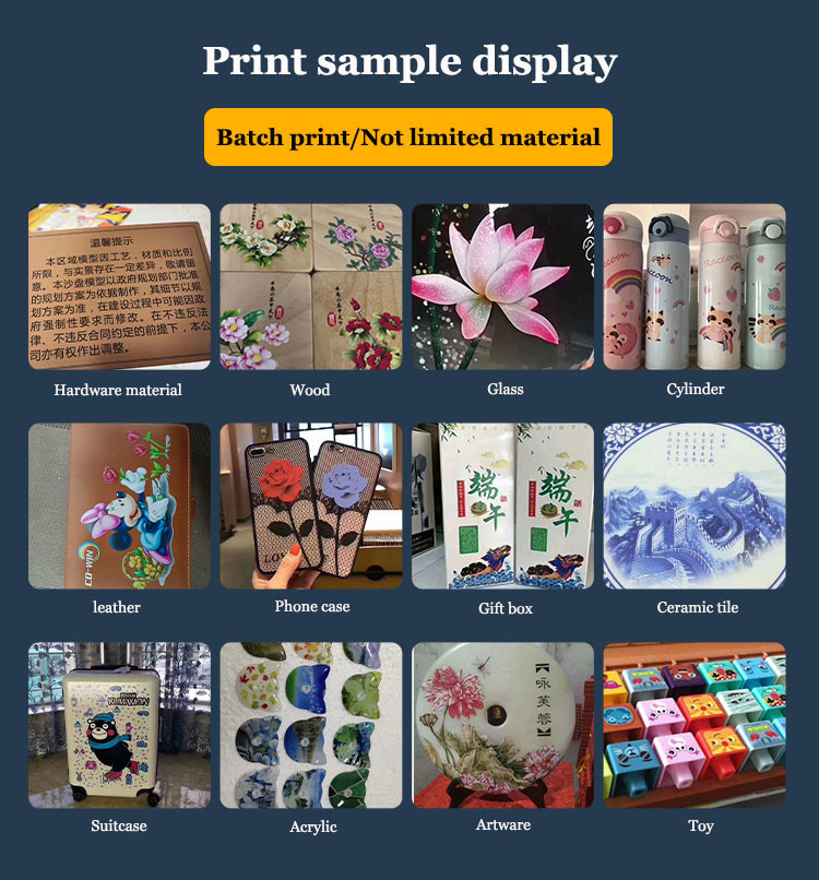 Het flat-panel printsysteem ondersteunt dezelfde kleur en witte output, verschillende kleur en witte output, witte inkt onderlaag, dekking, vernis, etc., en achterwaarts printen, met uitstekende anti-interferentie en stabiliteit. Het is een soort plaatvrij full-color digitaal printen dat niet wordt beperkt door enig materiaal.