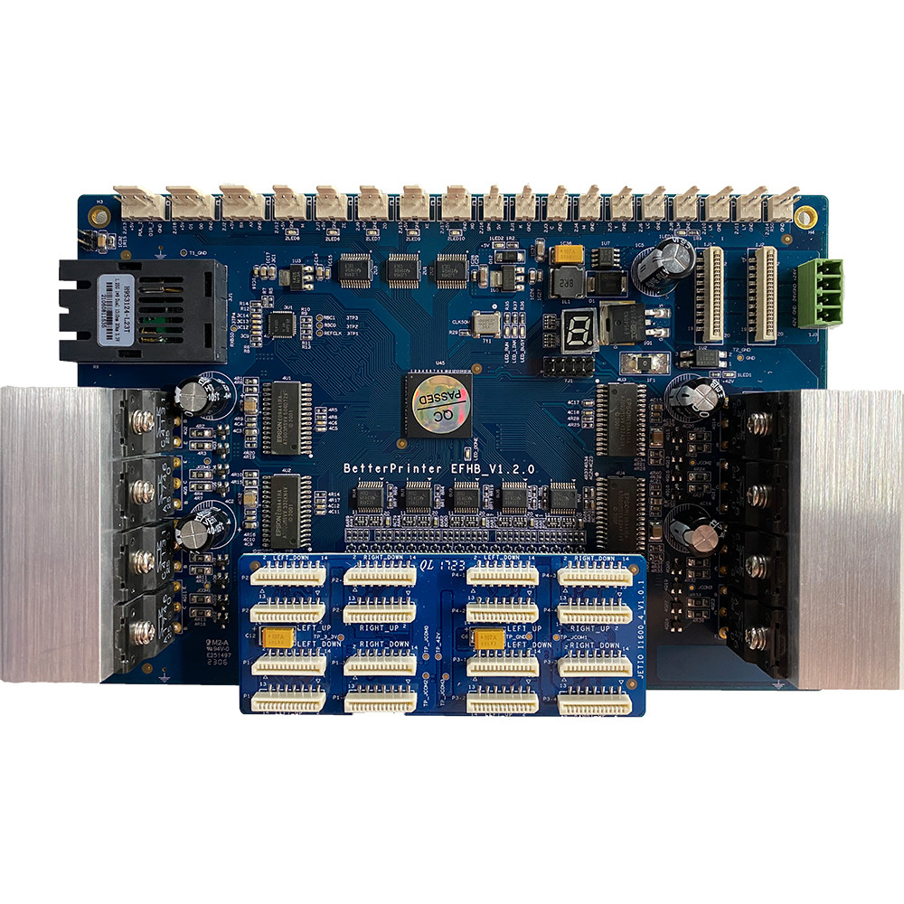 I1600 Vier koppen inkjetplaat voor fotomachine inkjetprinten, UV-platbedprinten, textiel thermische overdracht, witte inkt warm stempelen, kristallen labelprinten, enz., zijn volwassen oplossingen.met behulp van een glasvezelkabelverbinding, snelle transmissie snelheid.