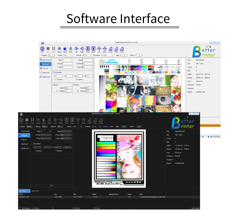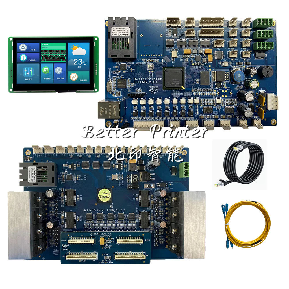 Gigabit netwerk dubbele kop inkjet print besturingssysteem, toepassing spuitmond model: G5I, netwerkkabel om verbinding te maken met de computer, snelle transmissie meer snelheid. Volwassen oplossingen zijn beschikbaar voor fotomachine inkjet printen, UV vlakbed printen, textiel warmteoverdracht printen, witte inkt hot stamping printen en dubbel station direct spuiten.